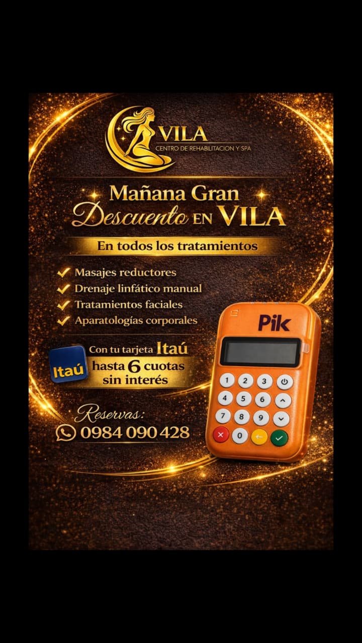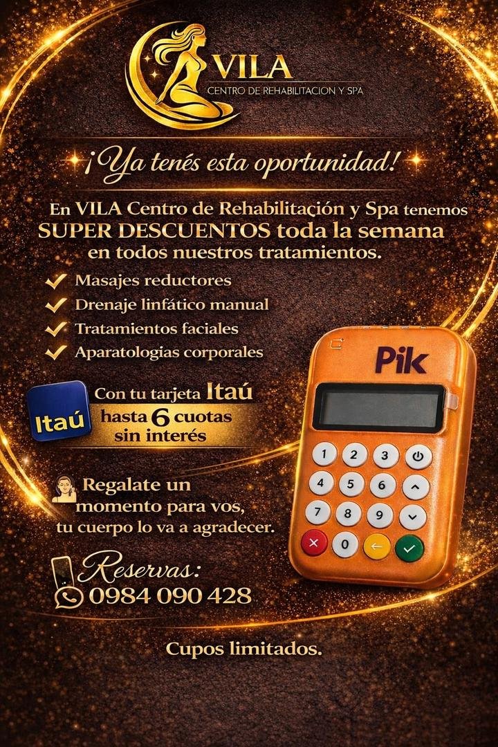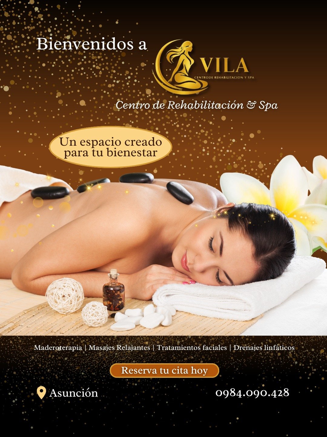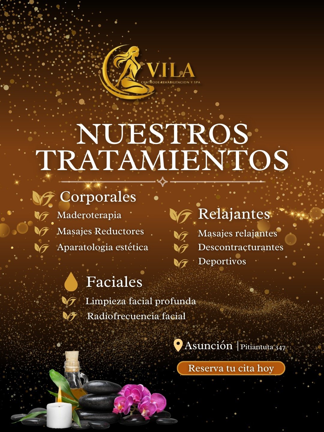Descubre VILA | Centro de Rehabilitación y Spa, tu nuevo refugio de bienestar en Asunción (Pitiantuta 347 - Barrio Mariscal López). Especializados en salud y estética, ofrecemos masajes relajantes y descontracturantes diseñados para liberar el estrés y tensiones musculares. Somos referentes en drenaje linfático manual (corporal y facial) y tratamientos post-operatorios, garantizando una recuperación segura y profesional. Contamos con servicios de masajes reductores, reflexoterapia y terapia craneofacial en un ambiente exclusivo y relajante. Si buscas un Spa en Asunción con enfoque clínico y resultados reales, VILA es tu mejor opción. ¡Visítanos en el corazón de la ciudad y renueva tu energía hoy mismo!